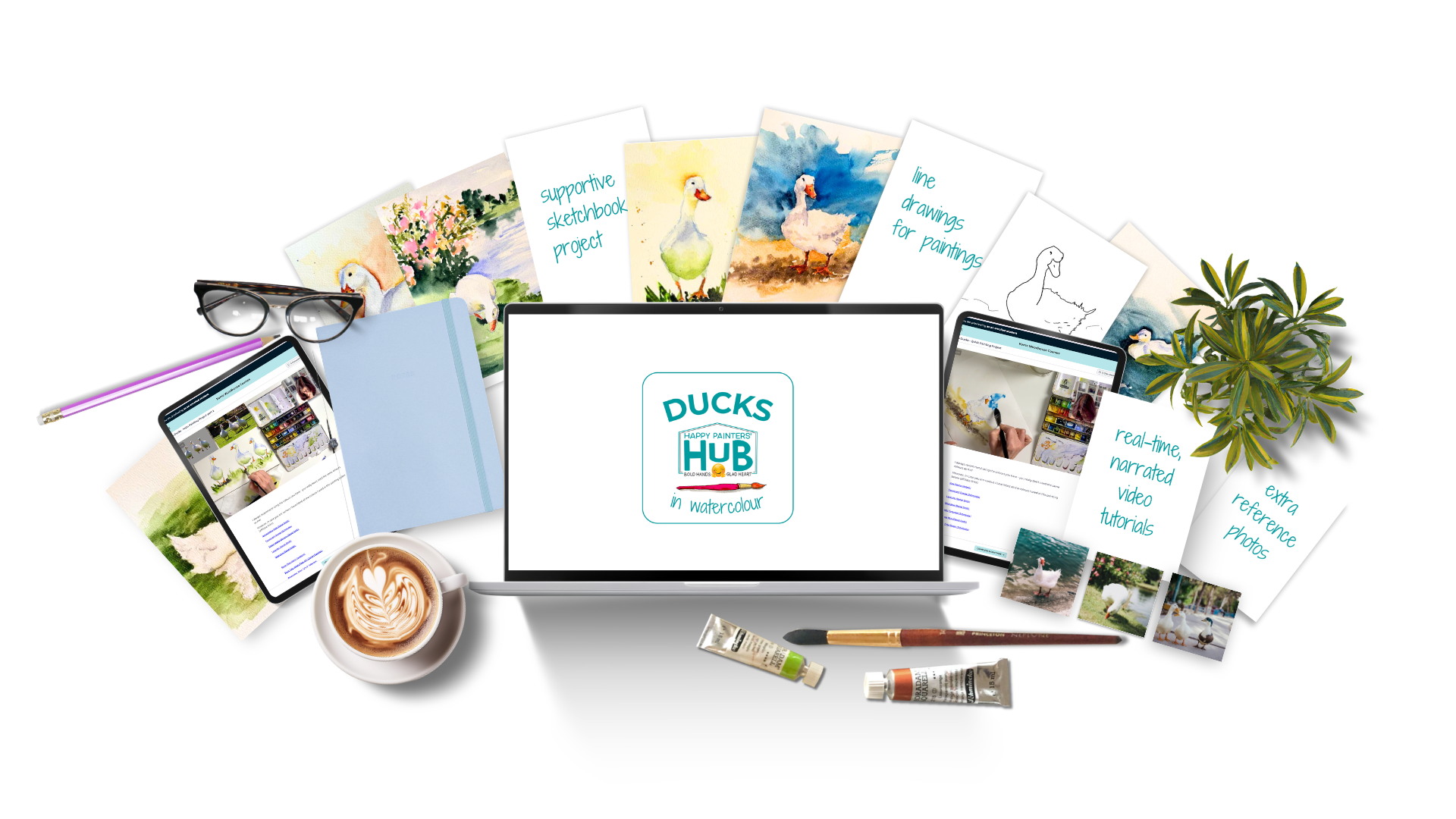 🎨 access to the whole library of over 30 courses just like the DUCKS including: 🌸 Wildflowers 🌱Garden Paths 🦜 Birds ☕️Still Life 🏝️Beach Moods and many more!